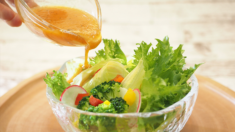 フォロのドレッシングは品質の良い淡路島産の玉ねぎと青森産のニンニクを使用しています。風味と栄養を損ねないよう加熱せずに生のまま加工した手造りのドレッシングです。